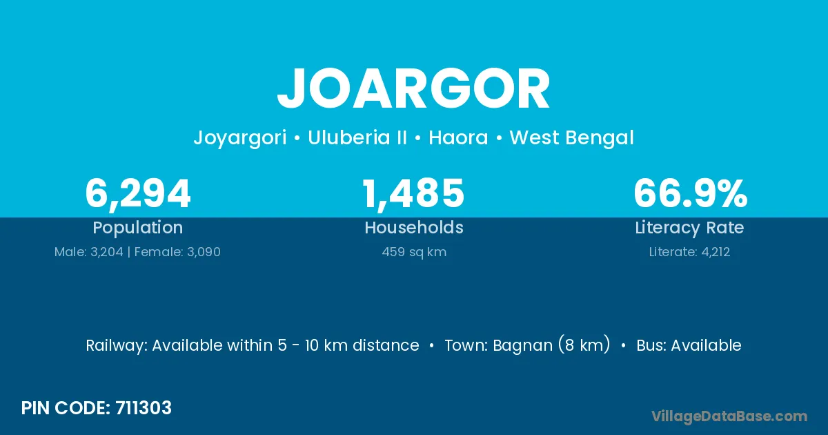Bagnan (8 km) is the nearest town to Joargor village for major economic activities and is located approximately 8 km away.