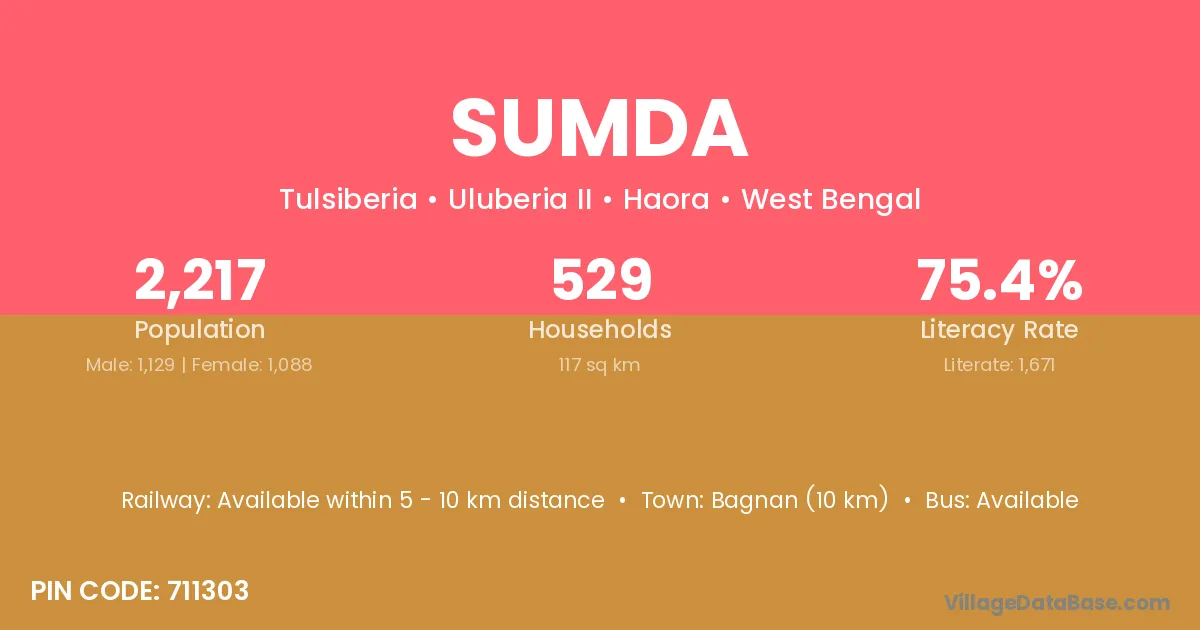 Bagnan (10 km) is the nearest town to Sumda village for major economic activities and is located approximately 10 km away.