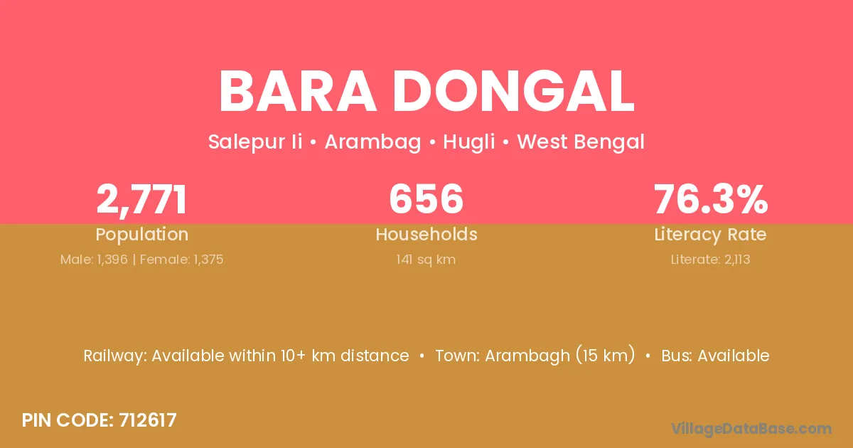 Arambagh (15 km) is the nearest town to Bara Dongal village for major economic activities and is located approximately 15 km away.