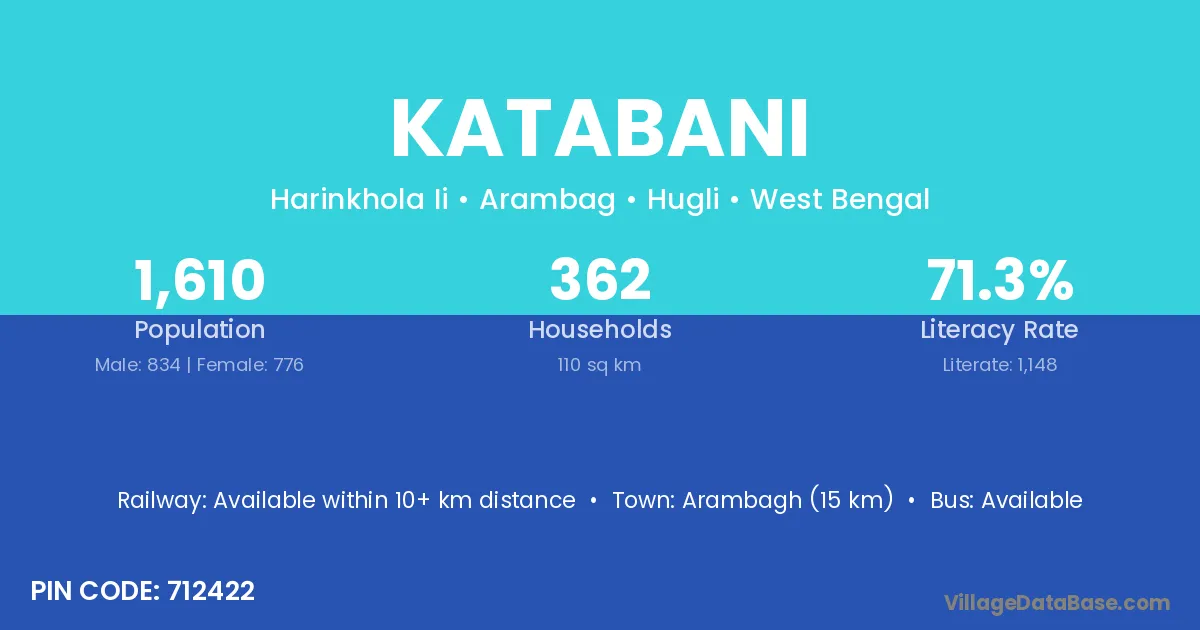Arambagh (15 km) is the nearest town to Katabani village for major economic activities and is located approximately 15 km away.