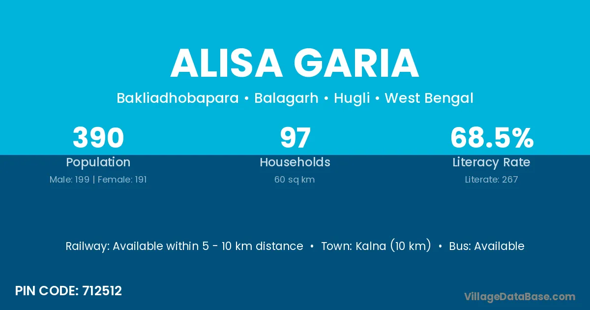 According to Census 2011 information, the village code of Alisa Garia village is 712512.