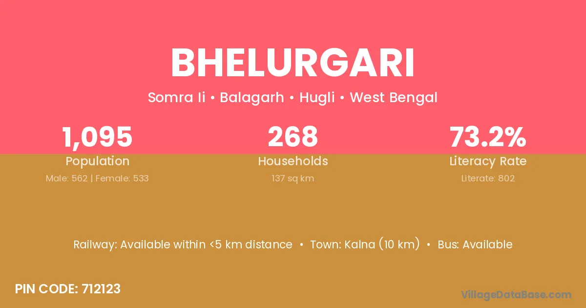 Bhelurgari village has a total population of 1,095 people, of which 562 are males and 533 are females.