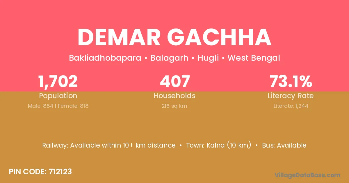 According to Census 2011 information, the village code of Demar Gachha village is 712123.