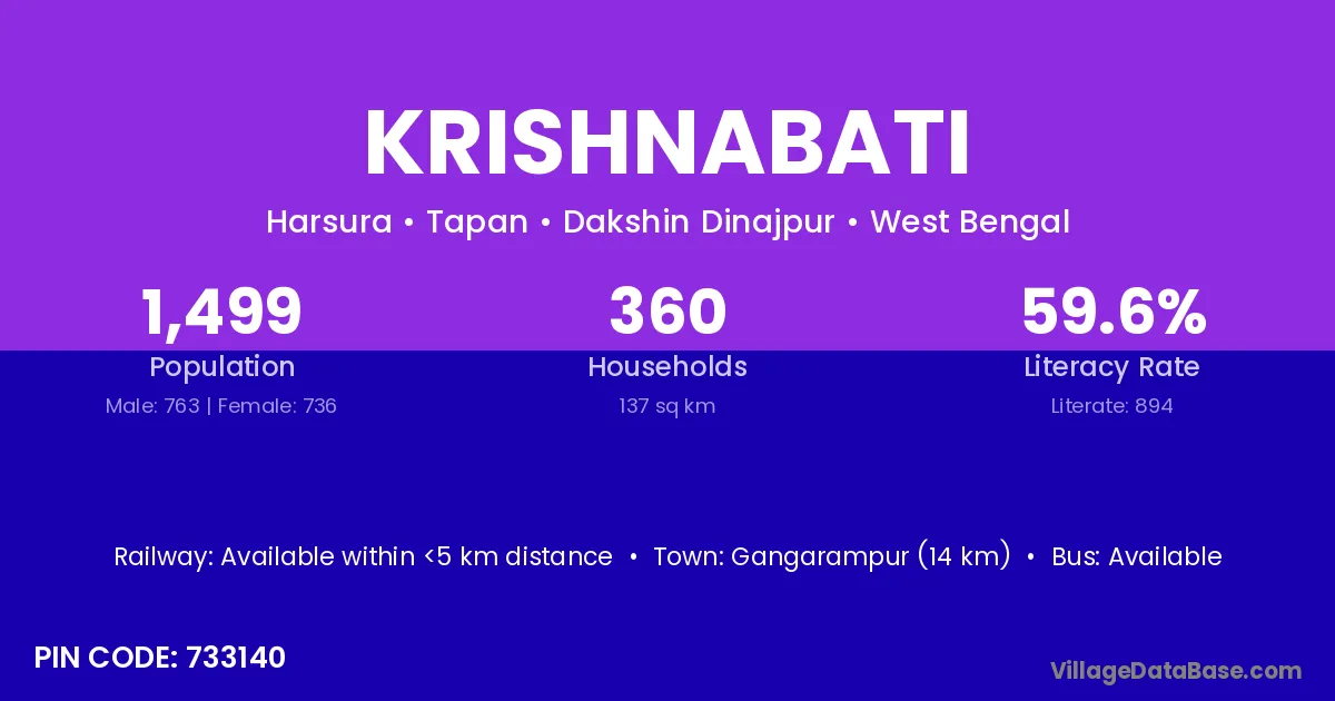Kalna (10 km) is the nearest town to Krishnabati village for major economic activities and is located approximately 10 km away.