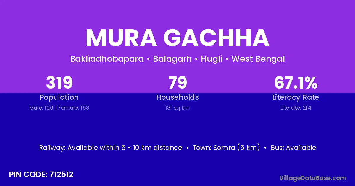 Somra (5 km) is the nearest town to Mura Gachha village for major economic activities and is located approximately 5 km away.