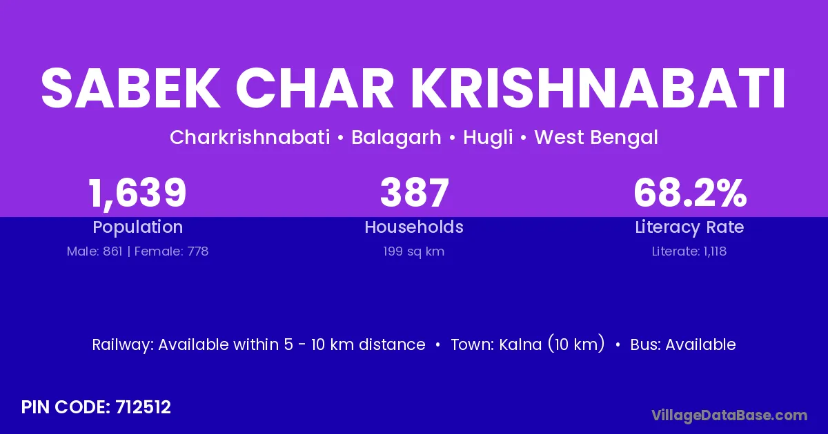 According to Census 2011 information, the village code of Sabek Char Krishnabati village is 712512.