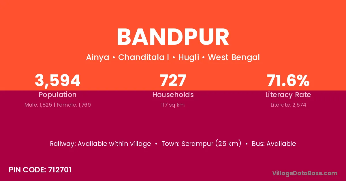Serampur (25 km) is the nearest town to Bandpur village for major economic activities and is located approximately 25 km away.