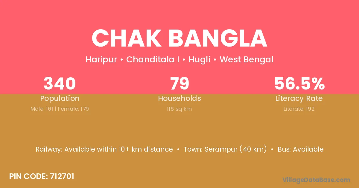 Serampur (40 km) is the nearest town to Chak Bangla village for major economic activities and is located approximately 40 km away.
