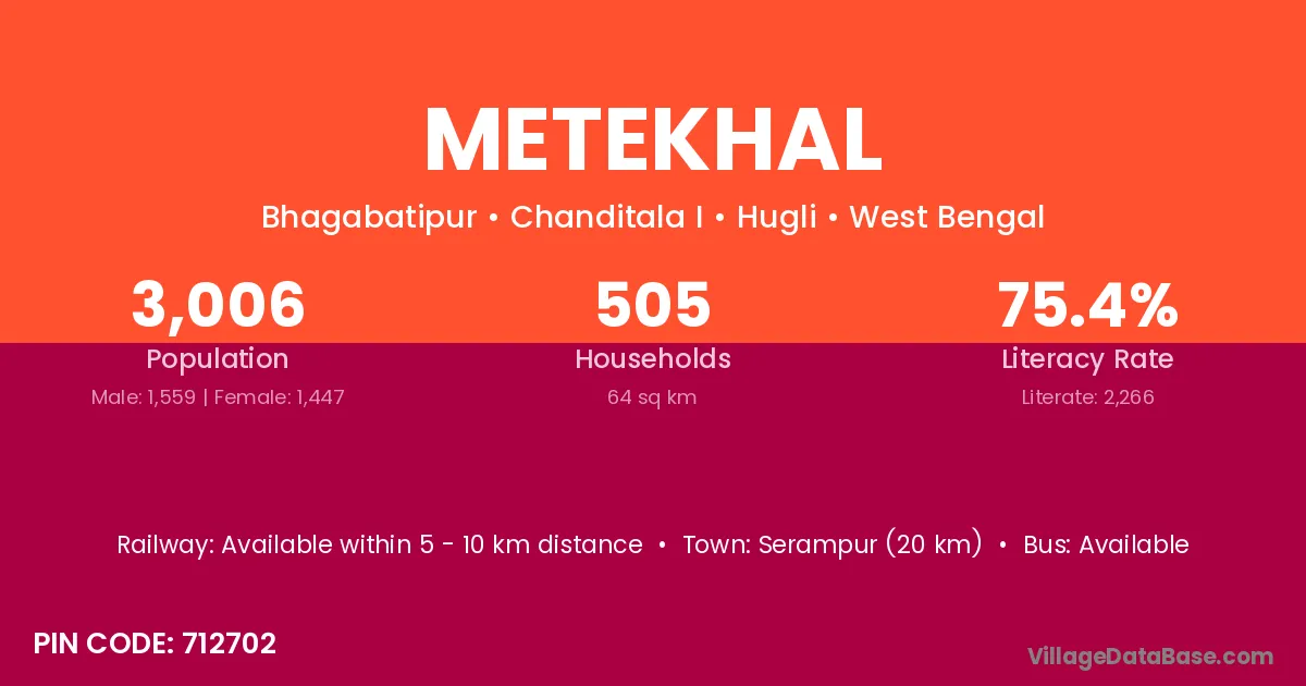 Serampur (20 km) is the nearest town to Metekhal village for major economic activities and is located approximately 20 km away.