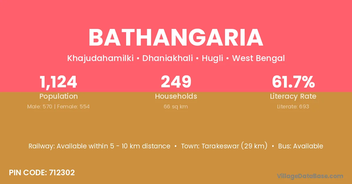 Tarakeswar (29 km) is the nearest town to Bathangaria village for major economic activities and is located approximately 29 km away.