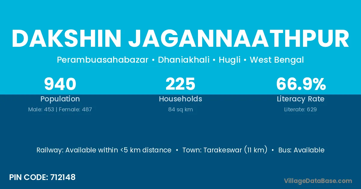 Tarakeswar (11 km) is the nearest town to Dakshin Jagannaathpur village for major economic activities and is located approximately 11 km away.