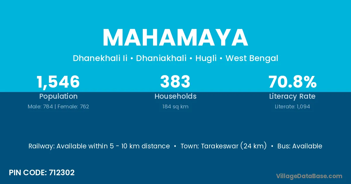 Tarakeswar (24 km) is the nearest town to Mahamaya village for major economic activities and is located approximately 24 km away.