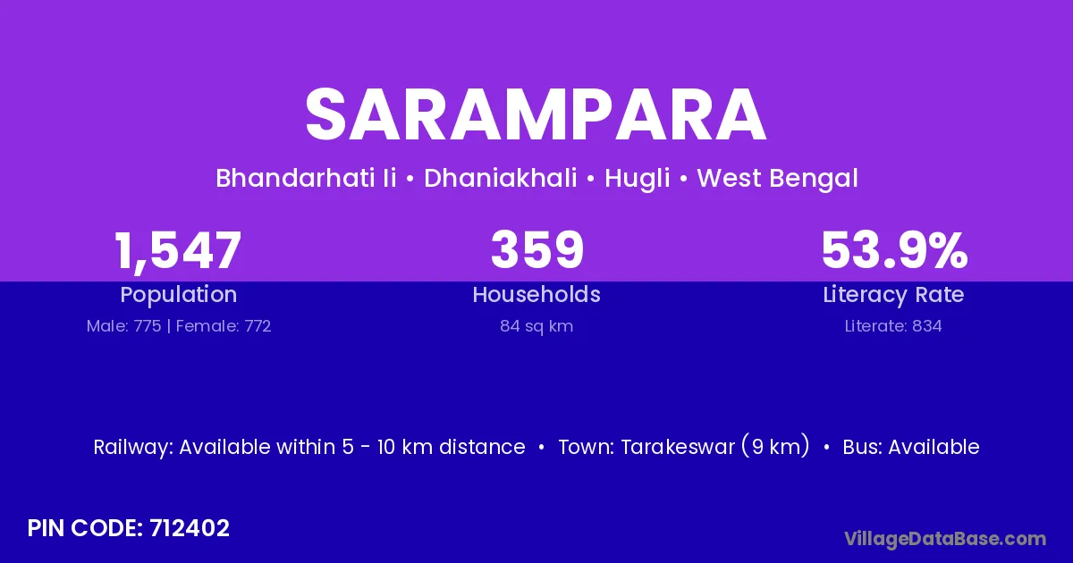 Tarakeswar (9 km) is the nearest town to Sarampara village for major economic activities and is located approximately 9 km away.