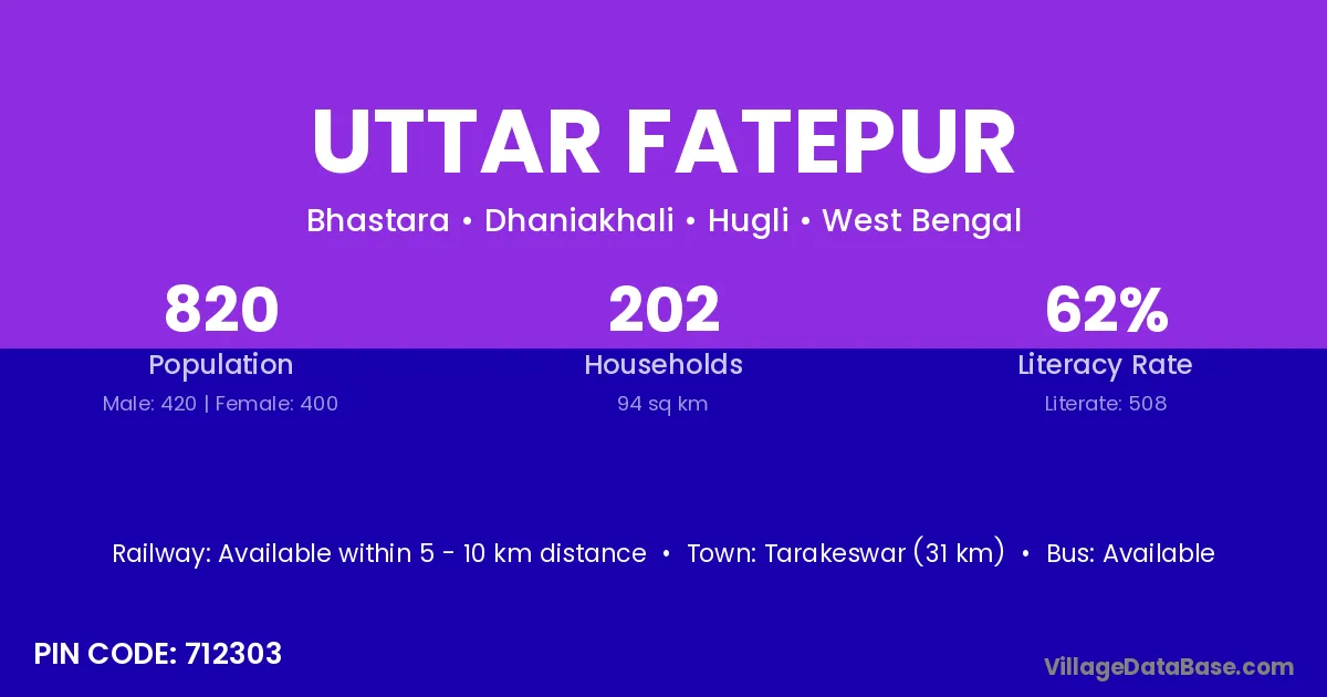 Tarakeswar (31 km) is the nearest town to Uttar Fatepur village for major economic activities and is located approximately 31 km away.