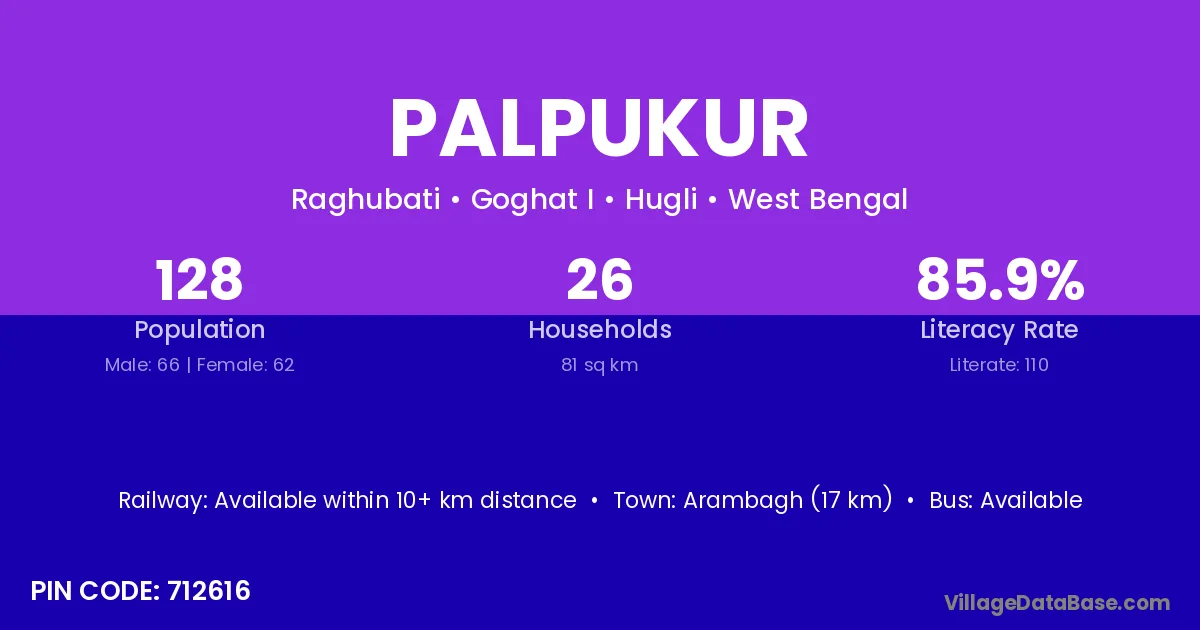Arambagh (17 km) is the nearest town to Palpukur village for major economic activities and is located approximately 17 km away.