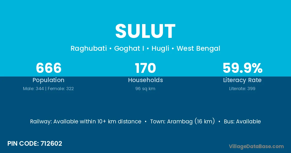 Arambag (16 km) is the nearest town to Sulut village for major economic activities and is located approximately 16 km away.
