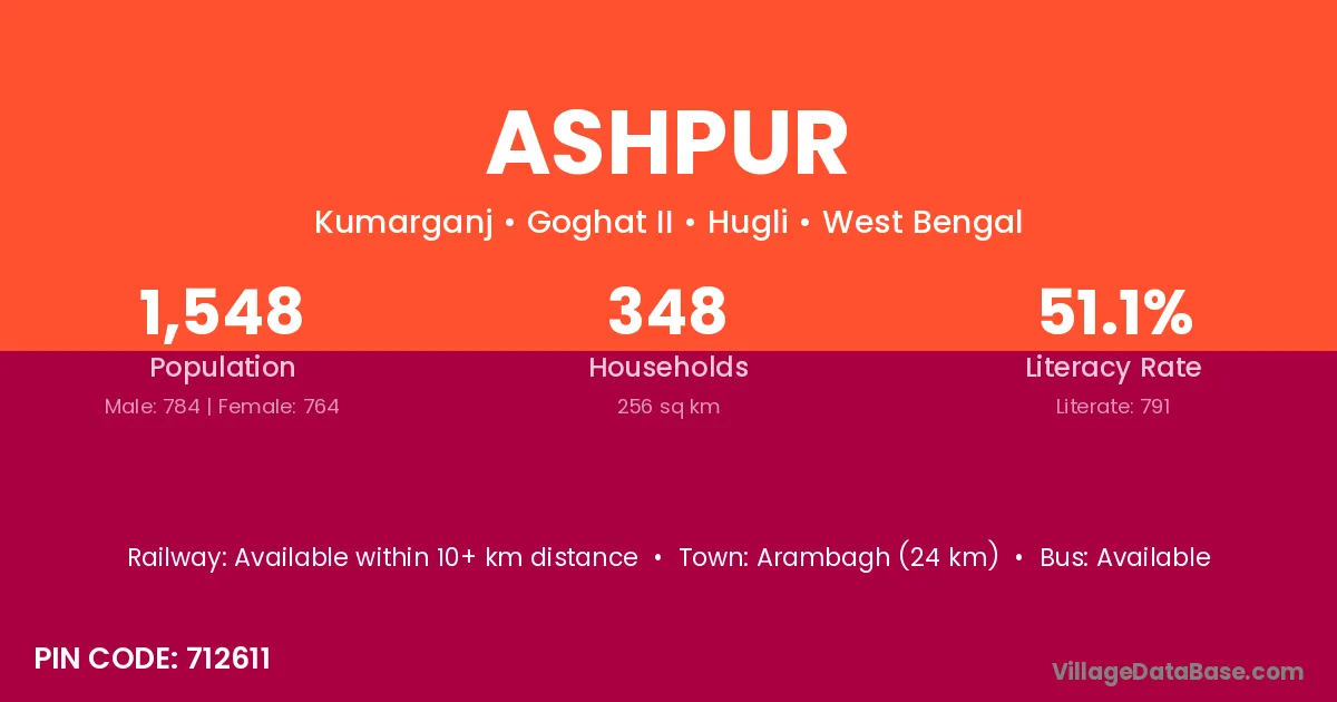 Arambagh (24 km) is the nearest town to Ashpur village for major economic activities and is located approximately 24 km away.