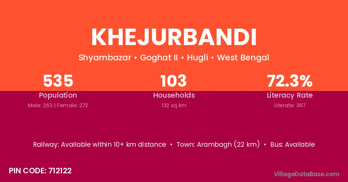 Arambagh (22 km) is the nearest town to Khejurbandi village for major economic activities and is located approximately 22 km away.