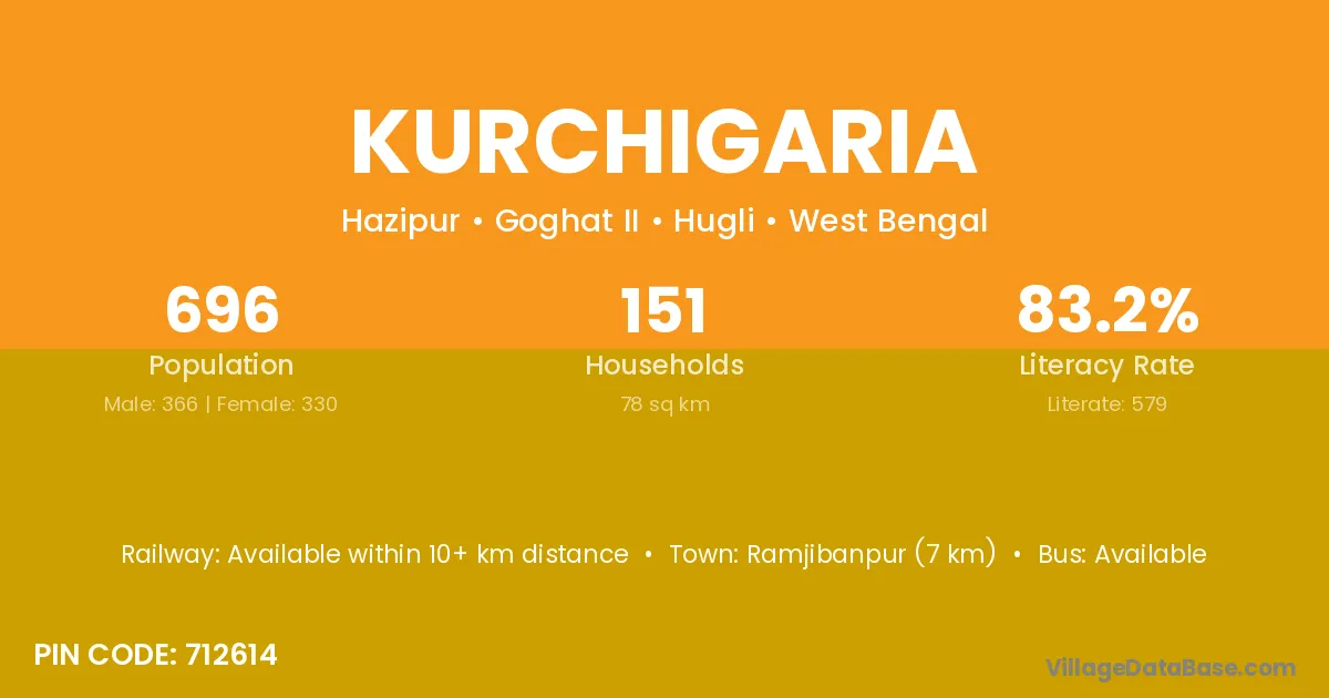 Ramjibanpur (7 km) is the nearest town to Kurchigaria village for major economic activities and is located approximately 7 km away.