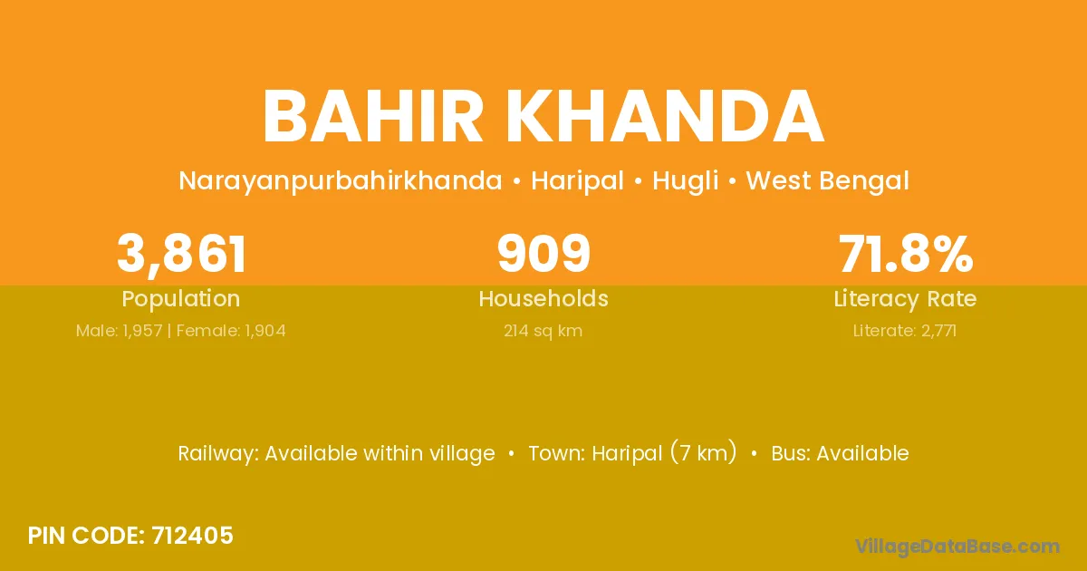 According to Census 2011 information, the village code of Bahir Khanda village is 712405.