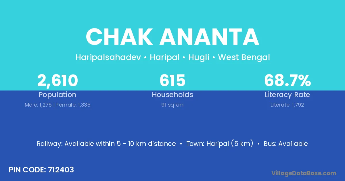 Chak Ananta village is located in the Haripal Subdivision of the Hugli district in West Bengal .