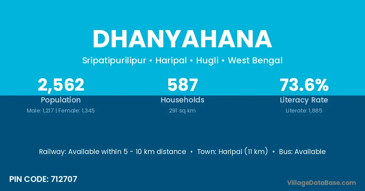According to Census 2011 information, the village code of Dhanyahana village is 712707.