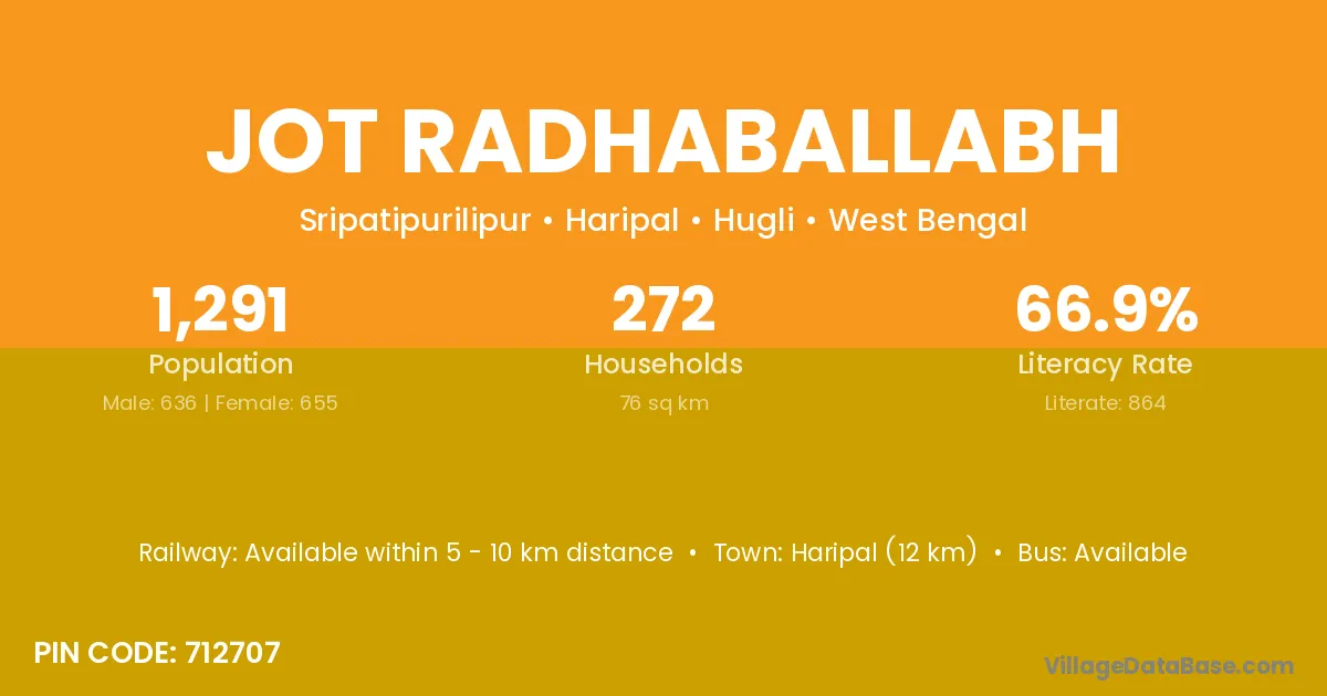Haripal (12 km) is the nearest town to Jot Radhaballabh village for major economic activities and is located approximately 12 km away.