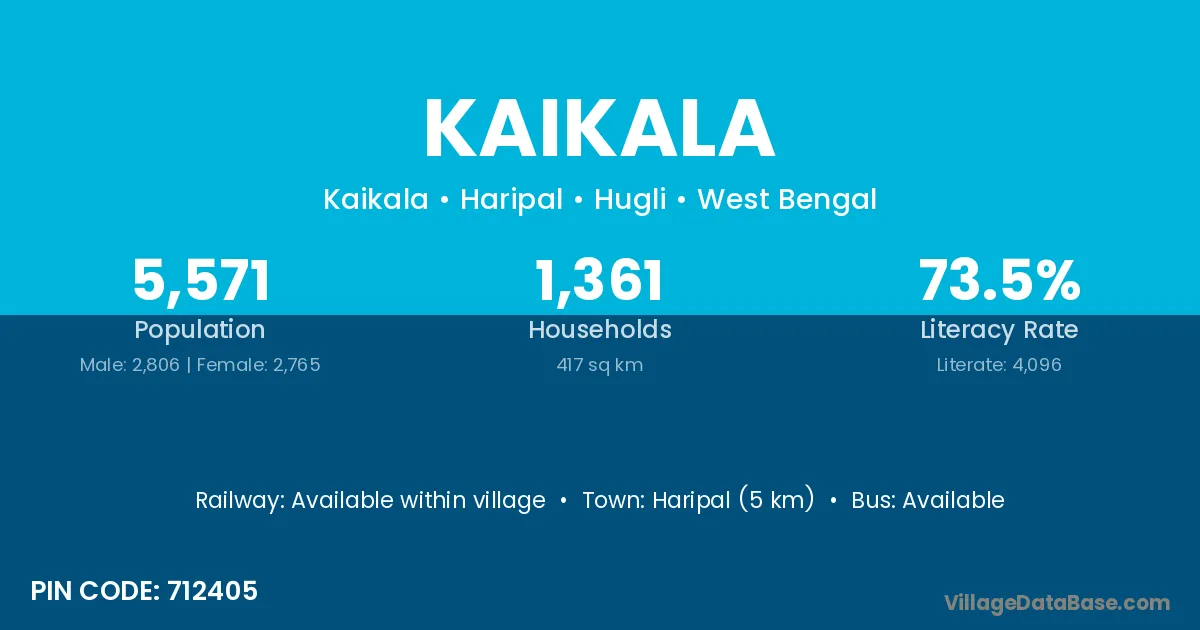 According to Census 2011 information, the village code of Kaikala village is 712405.