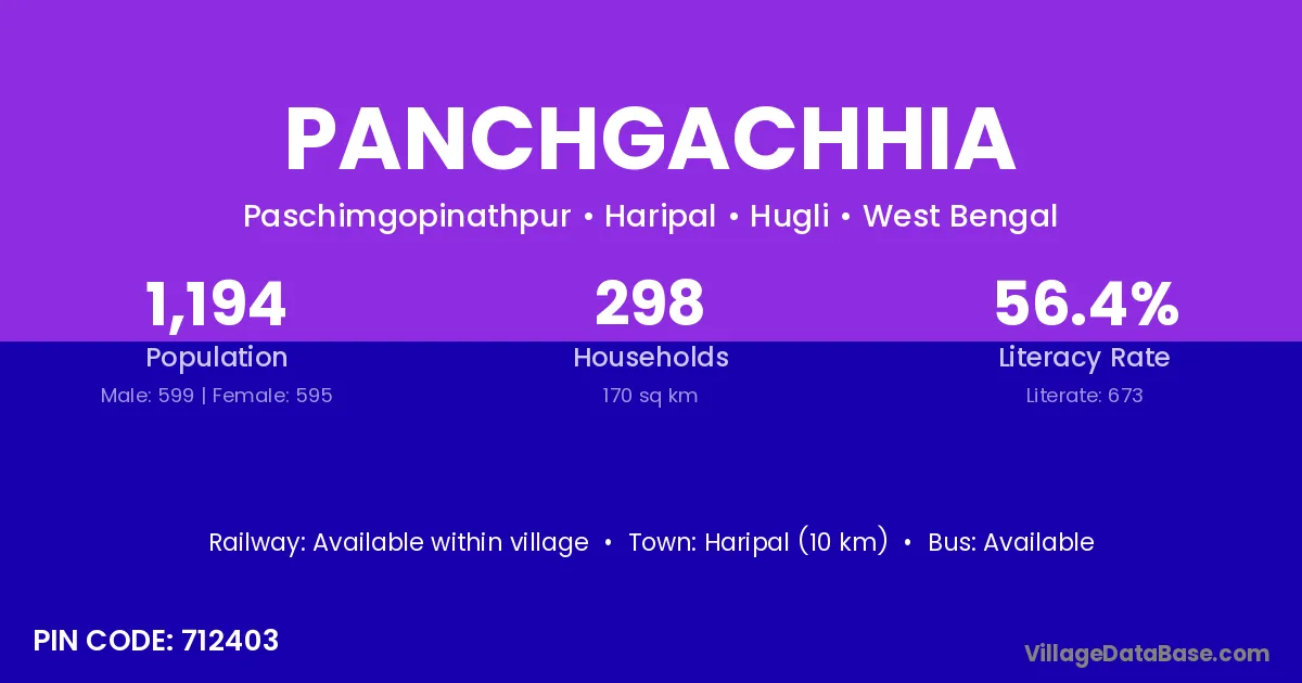 Panchgachhia village has a total population of 1,194 people, of which 599 are males and 595 are females.