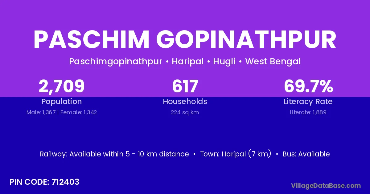 Haripal (7 km) is the nearest town to Paschim Gopinathpur village for major economic activities and is located approximately 7 km away.