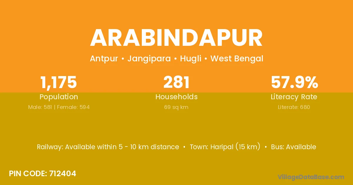 Haripal (15 km) is the nearest town to Arabindapur village for major economic activities and is located approximately 15 km away.