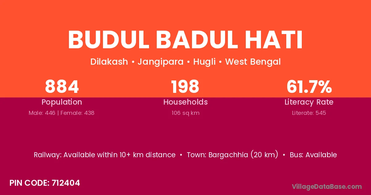 Budul Badul Hati village has a total population of 884 people, of which 446 are males and 438 are females.