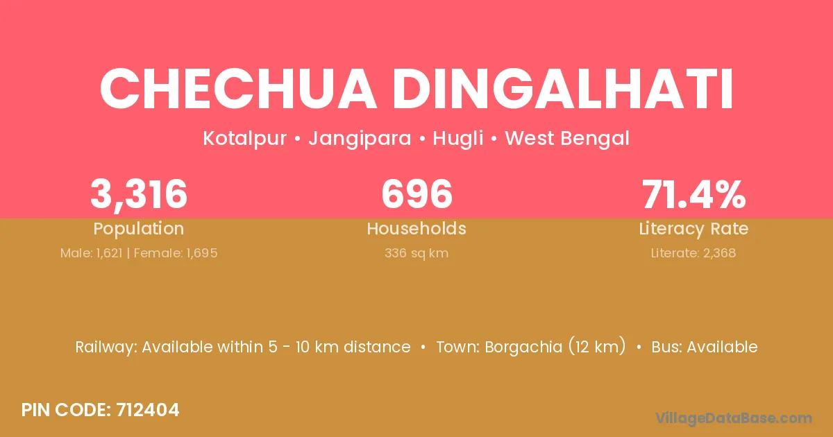 According to Census 2011 information, the village code of Chechua Dingalhati village is 712404.