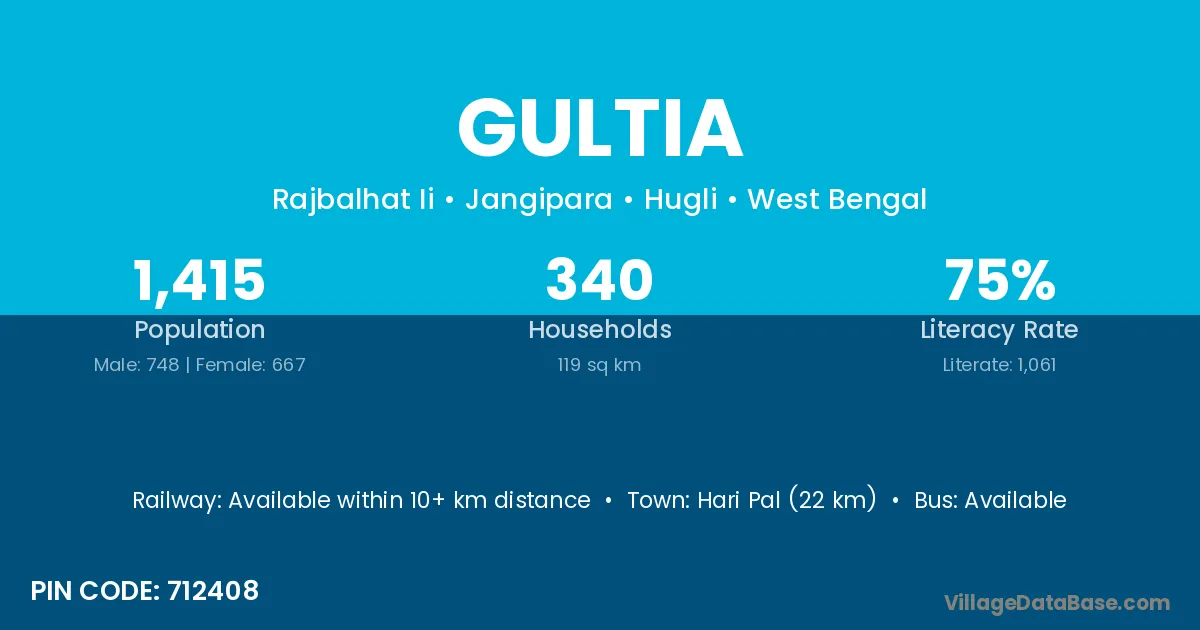 According to Census 2011 information, the village code of Gultia village is 712408.