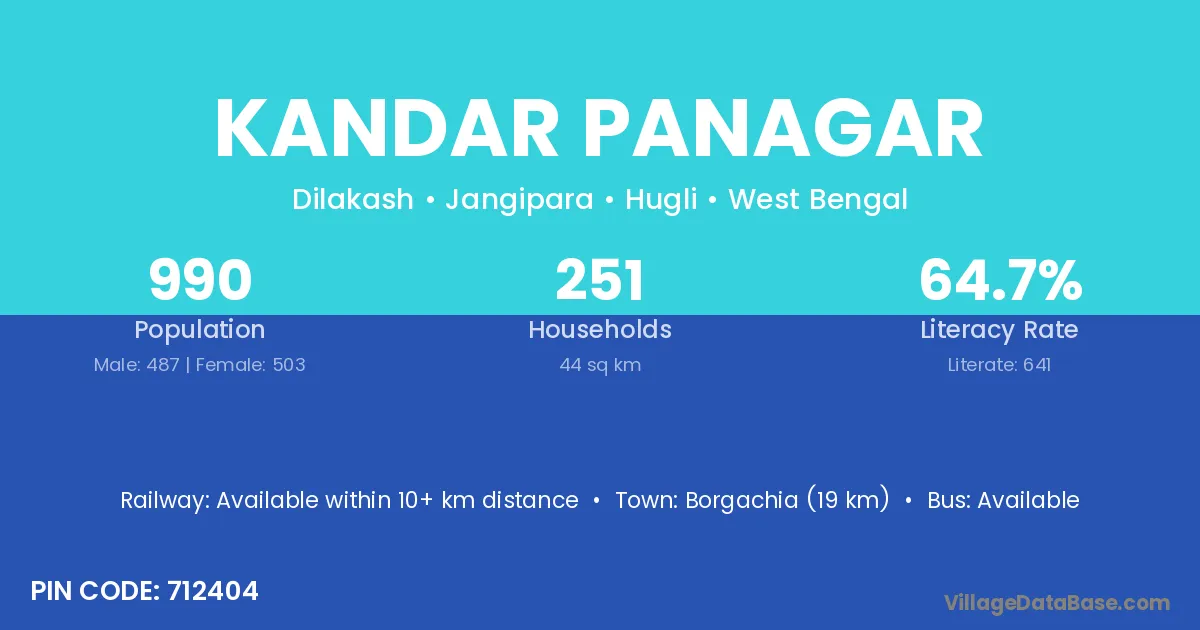 Borgachia (19 km) is the nearest town to Kandar Panagar village for major economic activities and is located approximately 19 km away.