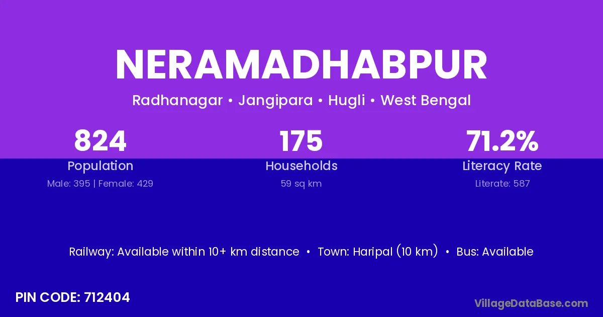 According to Census 2011 information, the village code of Neramadhabpur village is 712404.