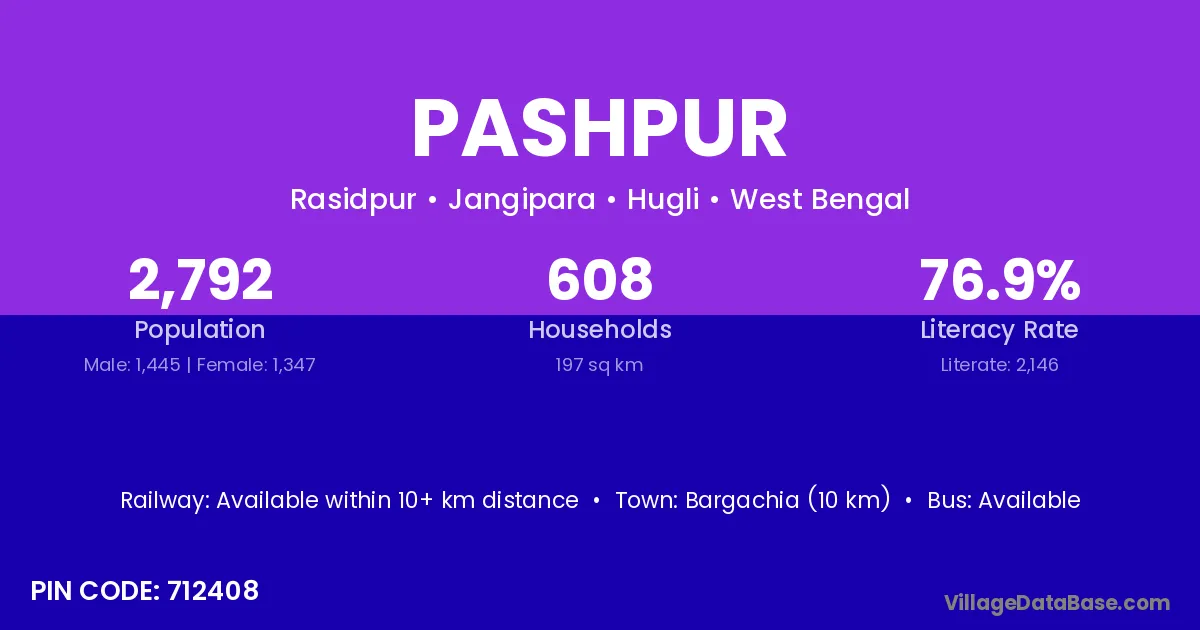 According to Census 2011 information, the village code of Pashpur village is 712408.