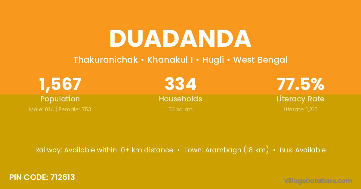 Arambagh (18 km) is the nearest town to Duadanda village for major economic activities and is located approximately 18 km away.