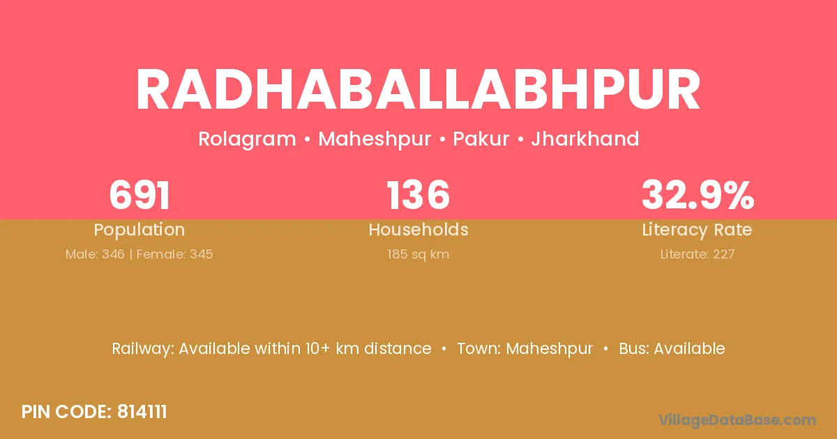 Arambagh (20 km) is the nearest town to Radhaballabhpur village for major economic activities and is located approximately 20 km away.