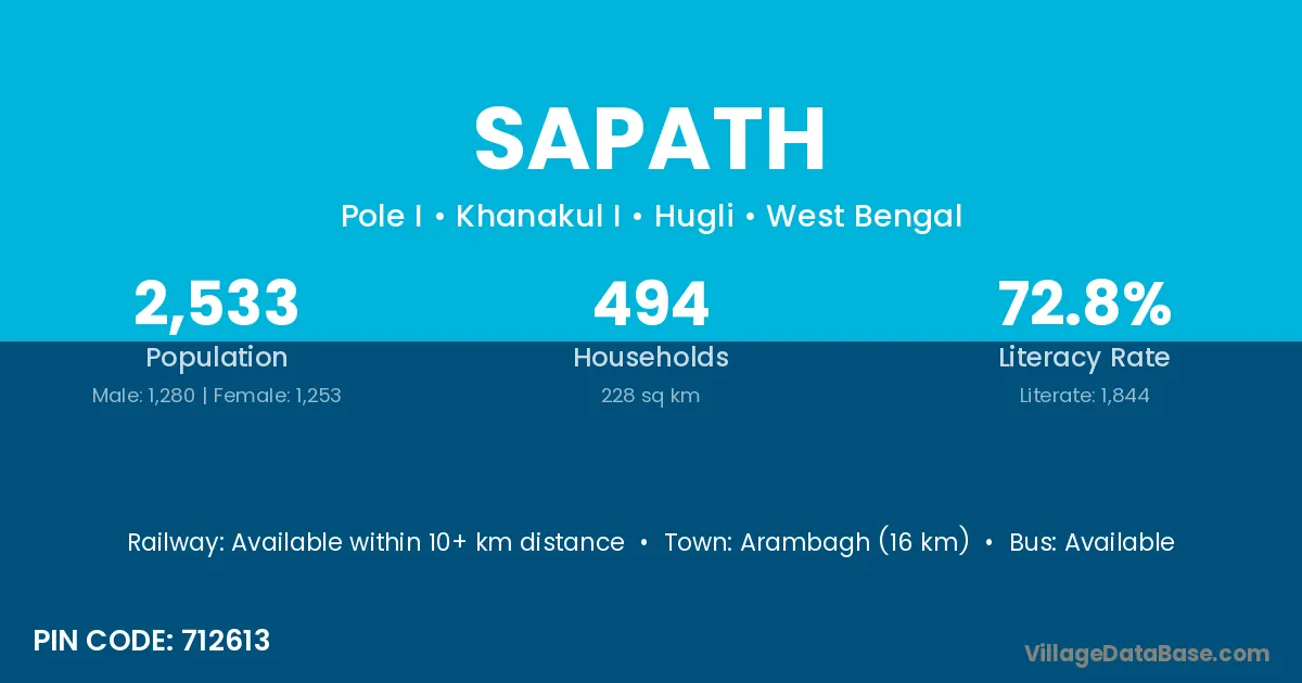 Arambagh (16 km) is the nearest town to Sapath village for major economic activities and is located approximately 16 km away.