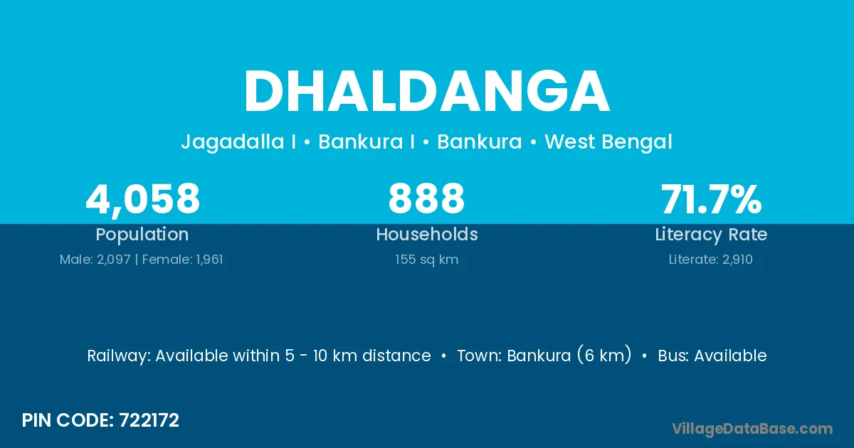 Arambagh (35 km) is the nearest town to Dhaldanga village for major economic activities and is located approximately 35 km away.