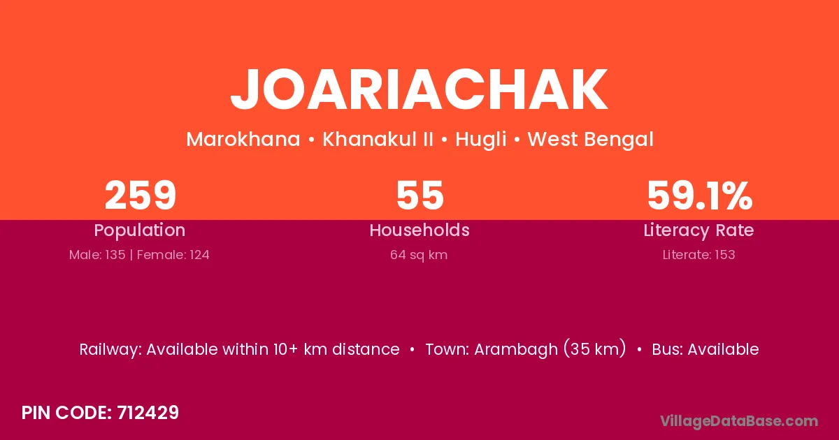 Arambagh (35 km) is the nearest town to Joariachak village for major economic activities and is located approximately 35 km away.
