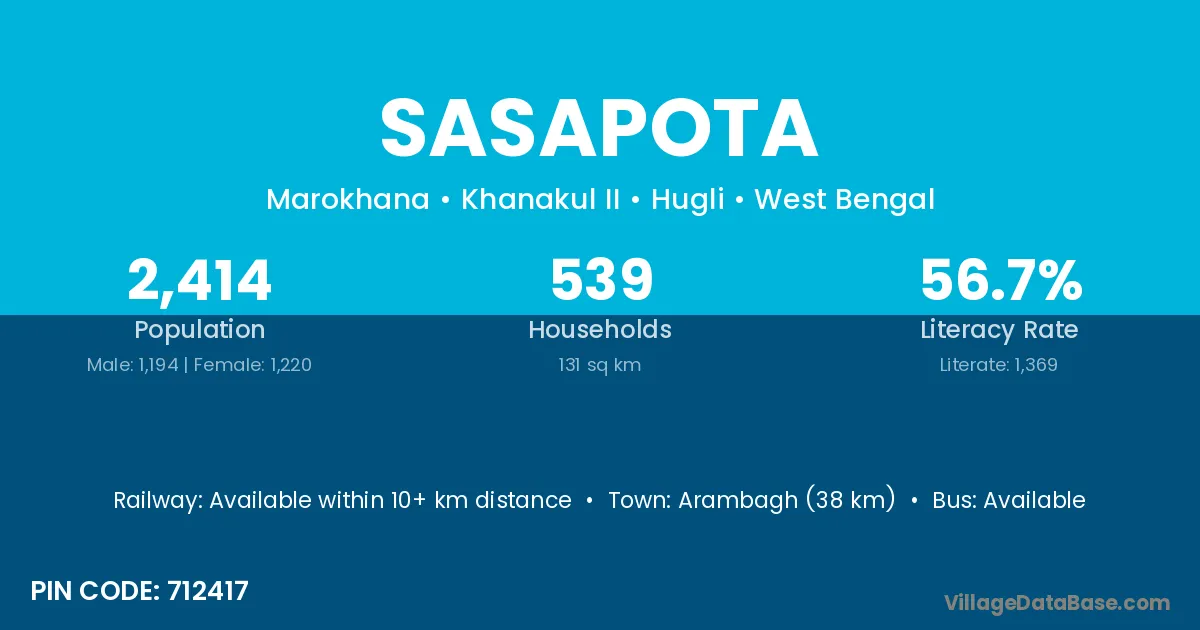 According to Census 2011 information, the village code of Sasapota village is 712417.