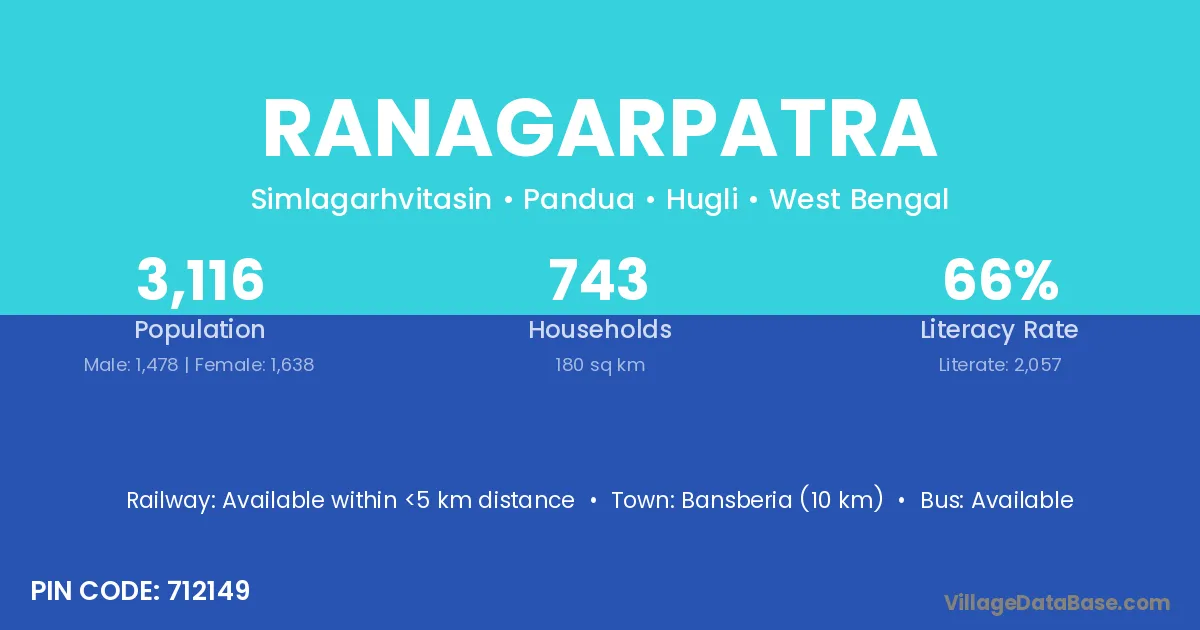 Bansberia (10 km) is the nearest town to Ranagarpatra village for major economic activities and is located approximately 10 km away.