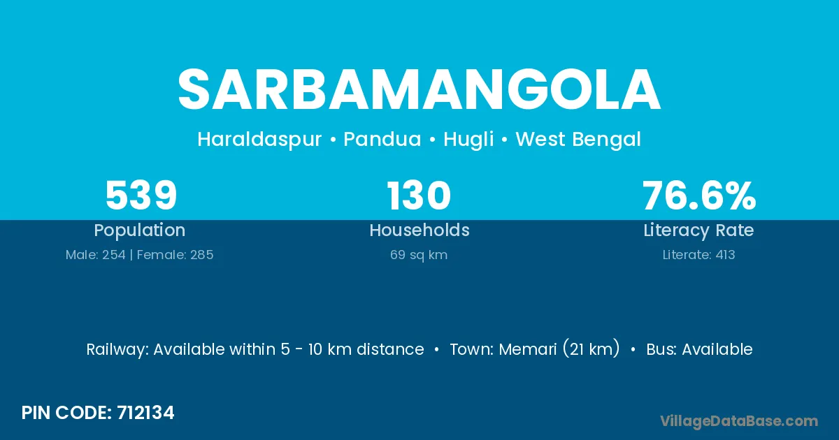According to Census 2011 information, the village code of Sarbamangola village is 712134.