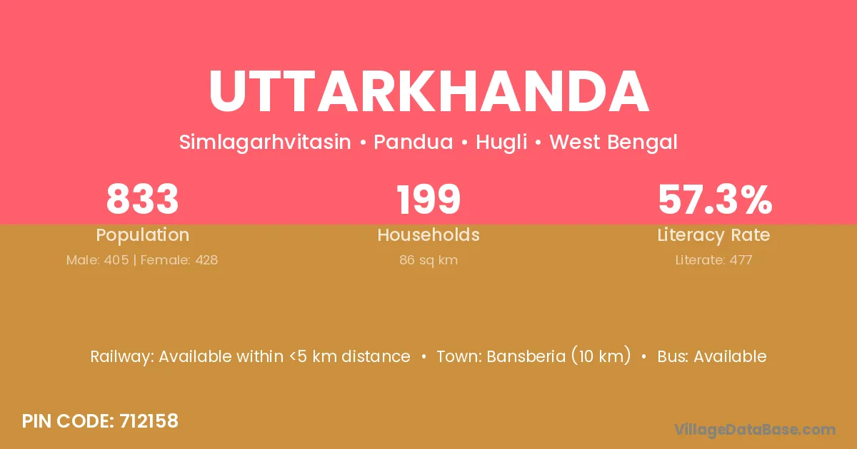 Bansberia (10 km) is the nearest town to Uttarkhanda village for major economic activities and is located approximately 10 km away.
