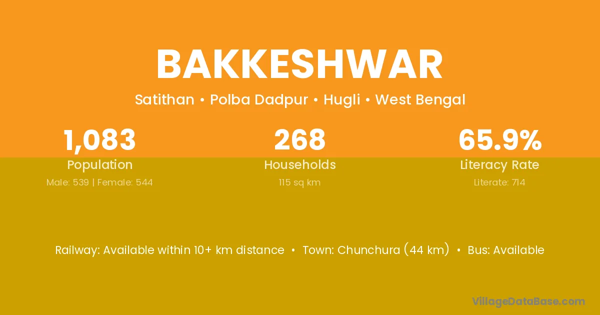 Chunchura (44 km) is the nearest town to Bakkeshwar village for major economic activities and is located approximately 44 km away.
