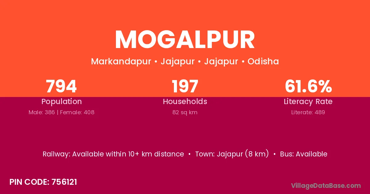 Chunchura. (10 km) is the nearest town to Mogalpur village for major economic activities and is located approximately 10 km away.