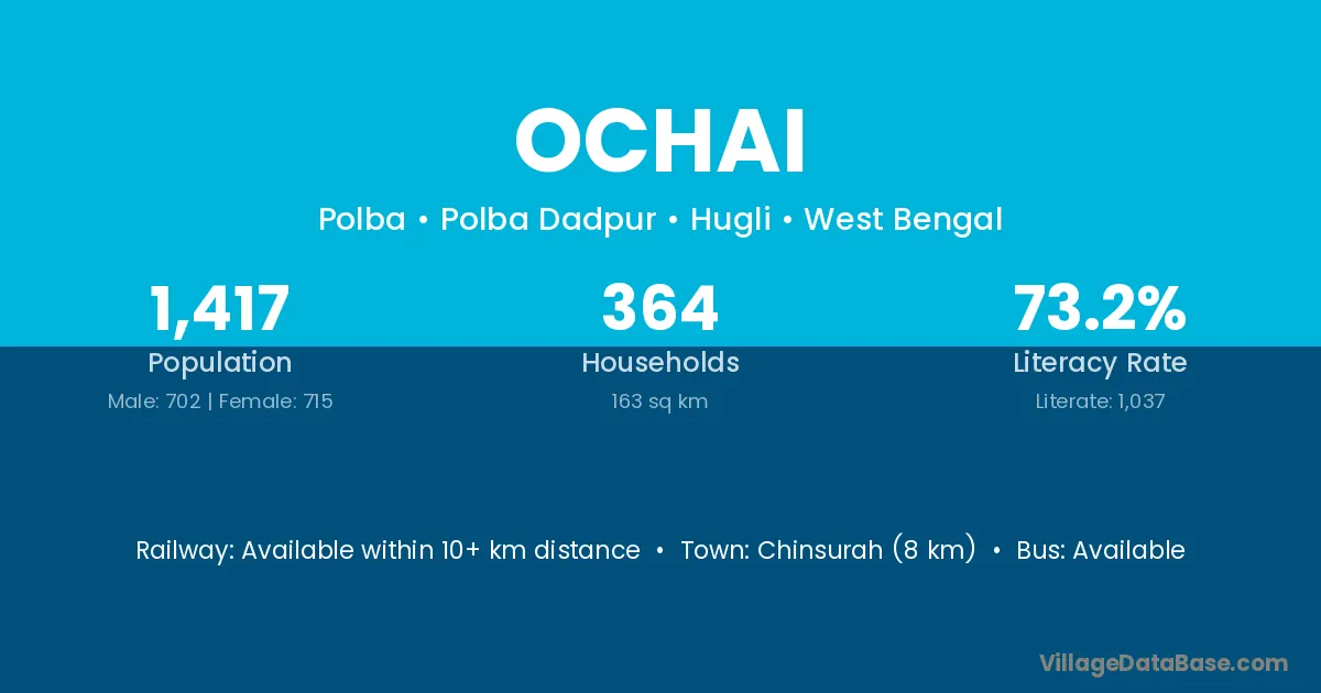 Chinsurah (8 km) is the nearest town to Ochai village for major economic activities and is located approximately 8 km away.