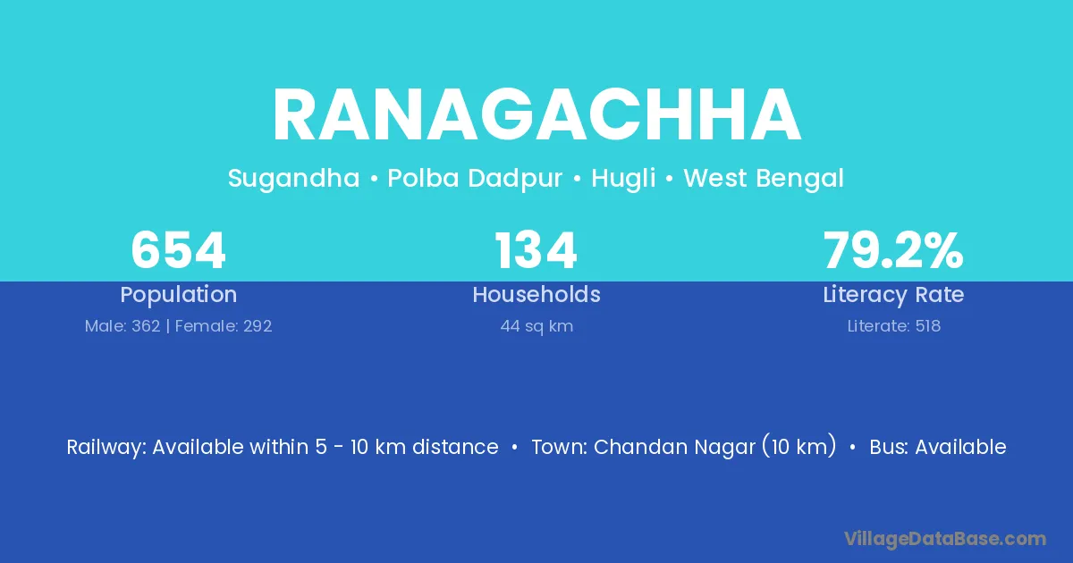 Chandan Nagar (10 km) is the nearest town to Ranagachha village for major economic activities and is located approximately 10 km away.